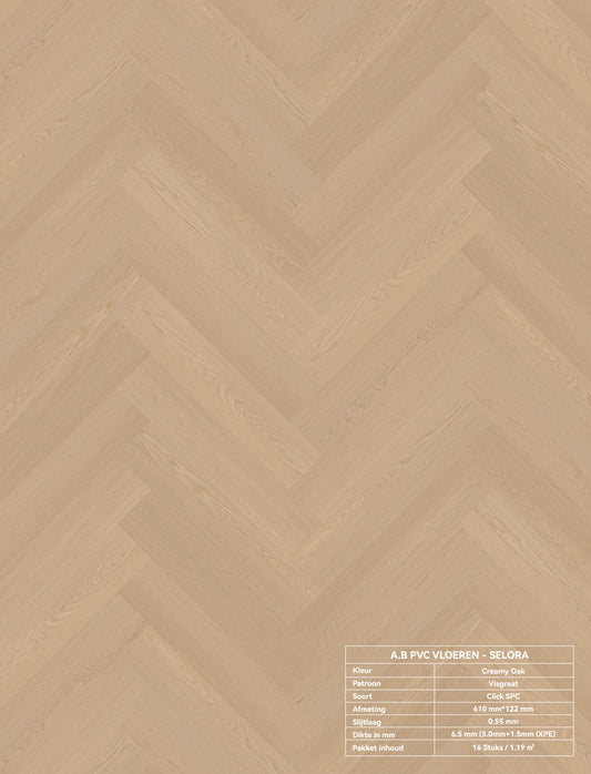 AanbiedingCreamy Oak | Visgraat | Pvc Vloer Click